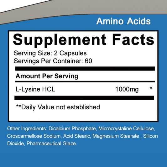 Regular price $16.30 USDRegular priceUnit price / per$208.15 USDSale price $16.30 USDSaleL-Lysine 1000mg – Collagen, Skin & Immune Function Support (120)