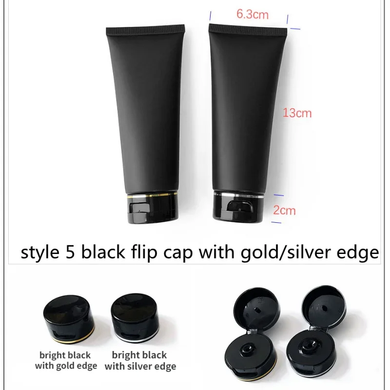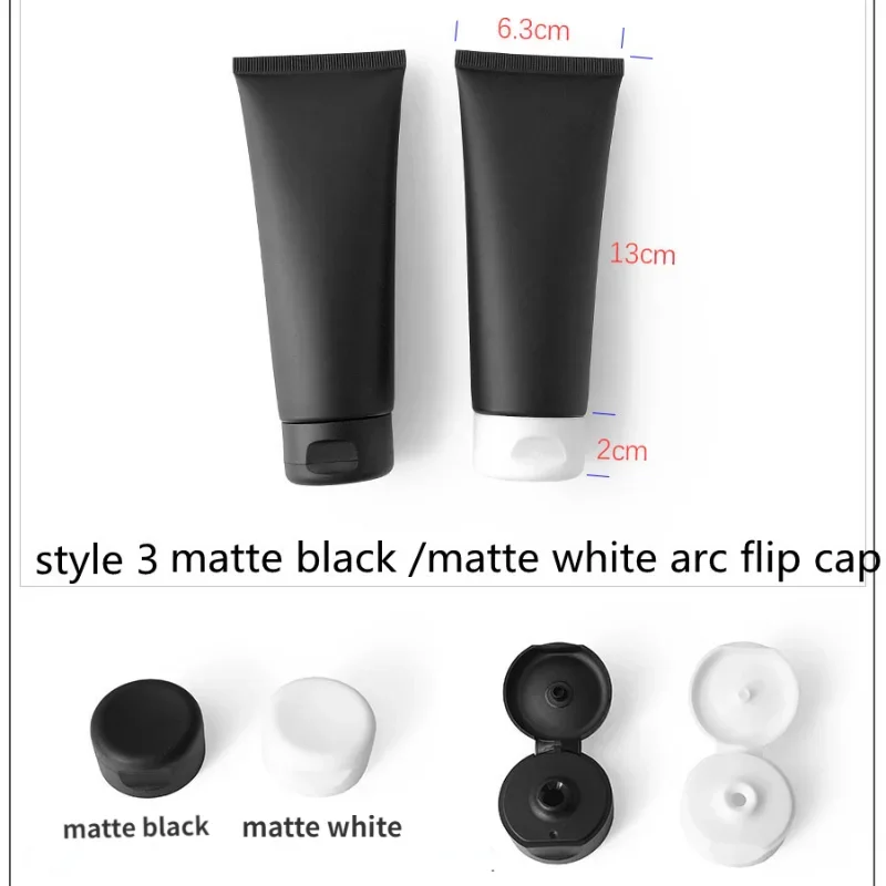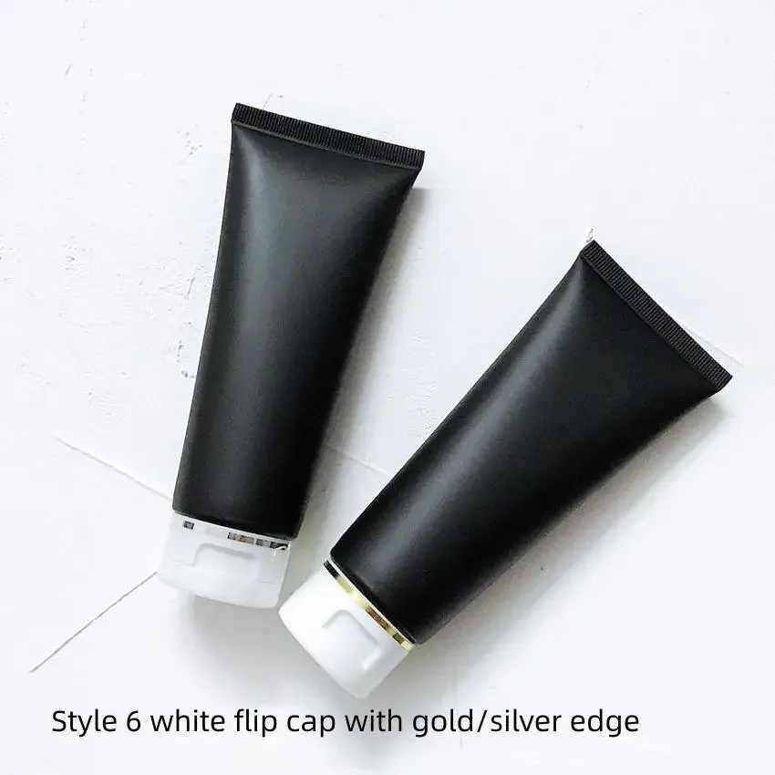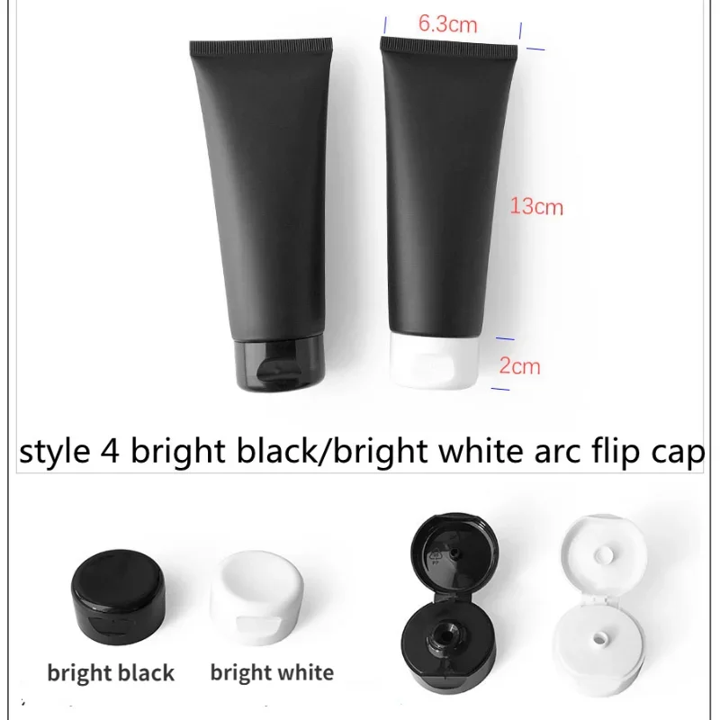 10-100pcs Empty 100ml Matte Black Soft Tube Plastic Squeeze Bottle Facial Cleanser Body Cream Cosmetic Container Flip Cap