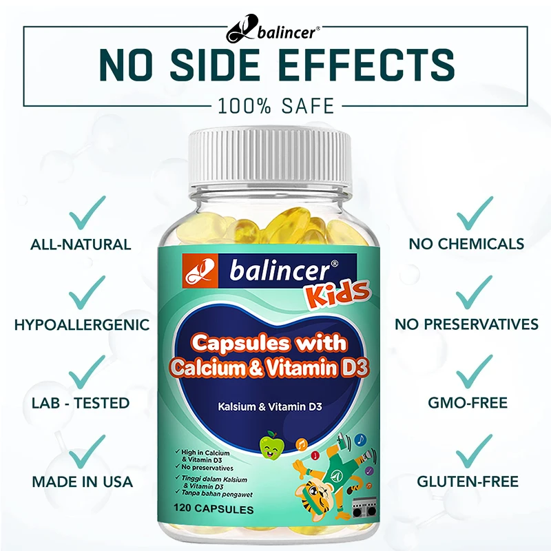 Calcium, Vitamin K, Vitamin D, Magnesium: Poor bone health may lead to slow growth, rickets or osteoporosis. However, it is difficult to ensure that children get all the nutrients they need for strong bones through food alone. Therefore, is rich in nutrients necessary for children's healthy bone growth and normal development. Our tablets provide children with minerals and vitamins that play a key role in enhancing calcium absorption, promoting bone growth and supporting bone strength.