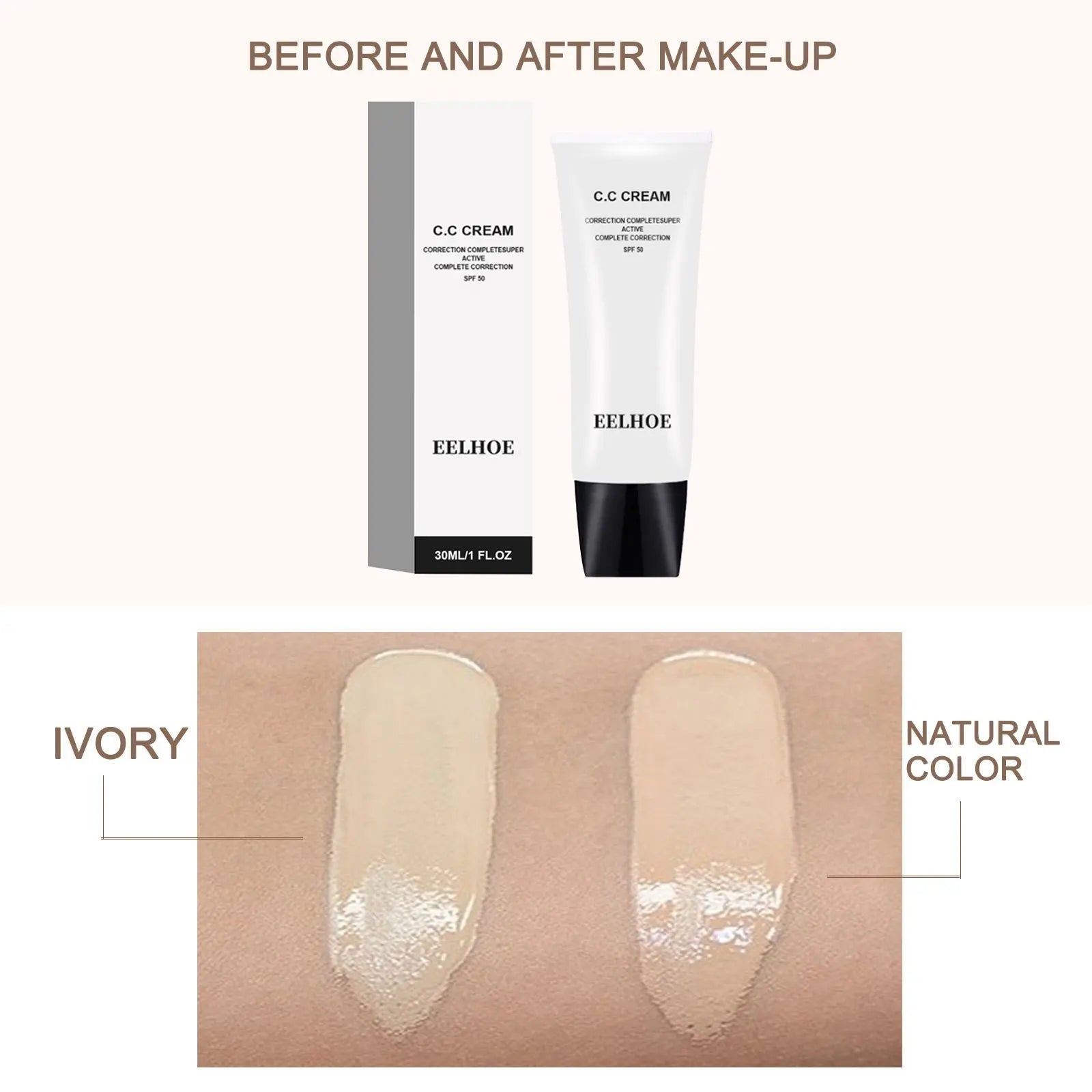 EELHOE CC Cream Makeup Korean Cosmetics Concealer Skin Brightening Cream BB Cream Primer Foundation Make-Up for Women Beauty Health 30g