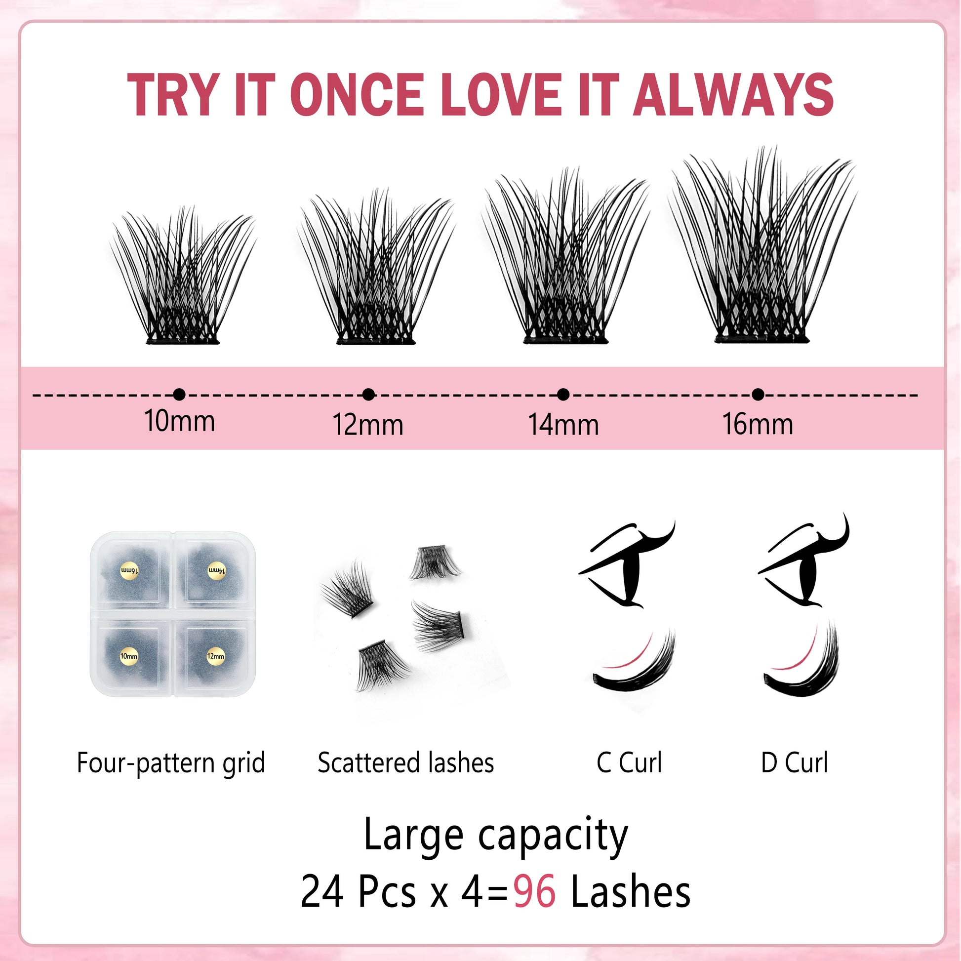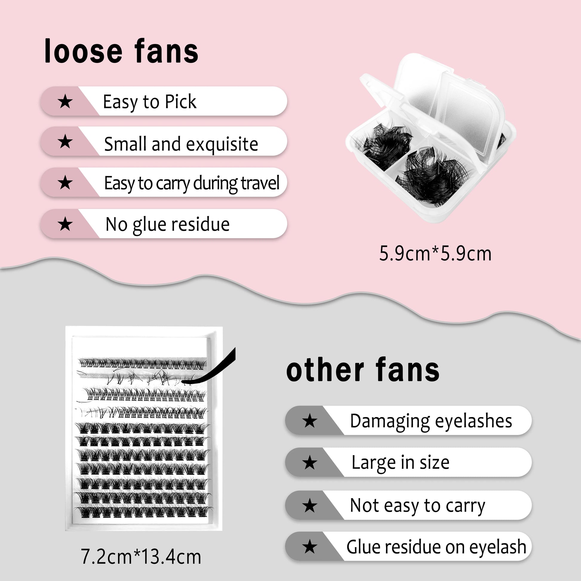 2.【Will Putting 96 Eyelash Clusters Into a Small Box Cause the Shape of the Lash Cluster to Change?】 The answer is not. CoMango's special heating process makes the curl and shape of the DIY eyelash extensions more stable. Even if you rub it with your hands, you will not easily change the curvature and shape of the individual lashes cluster.