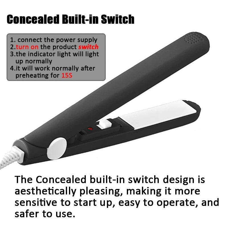 Mini Ceramic Flat Iron – Portable Hair Straightener Curler
