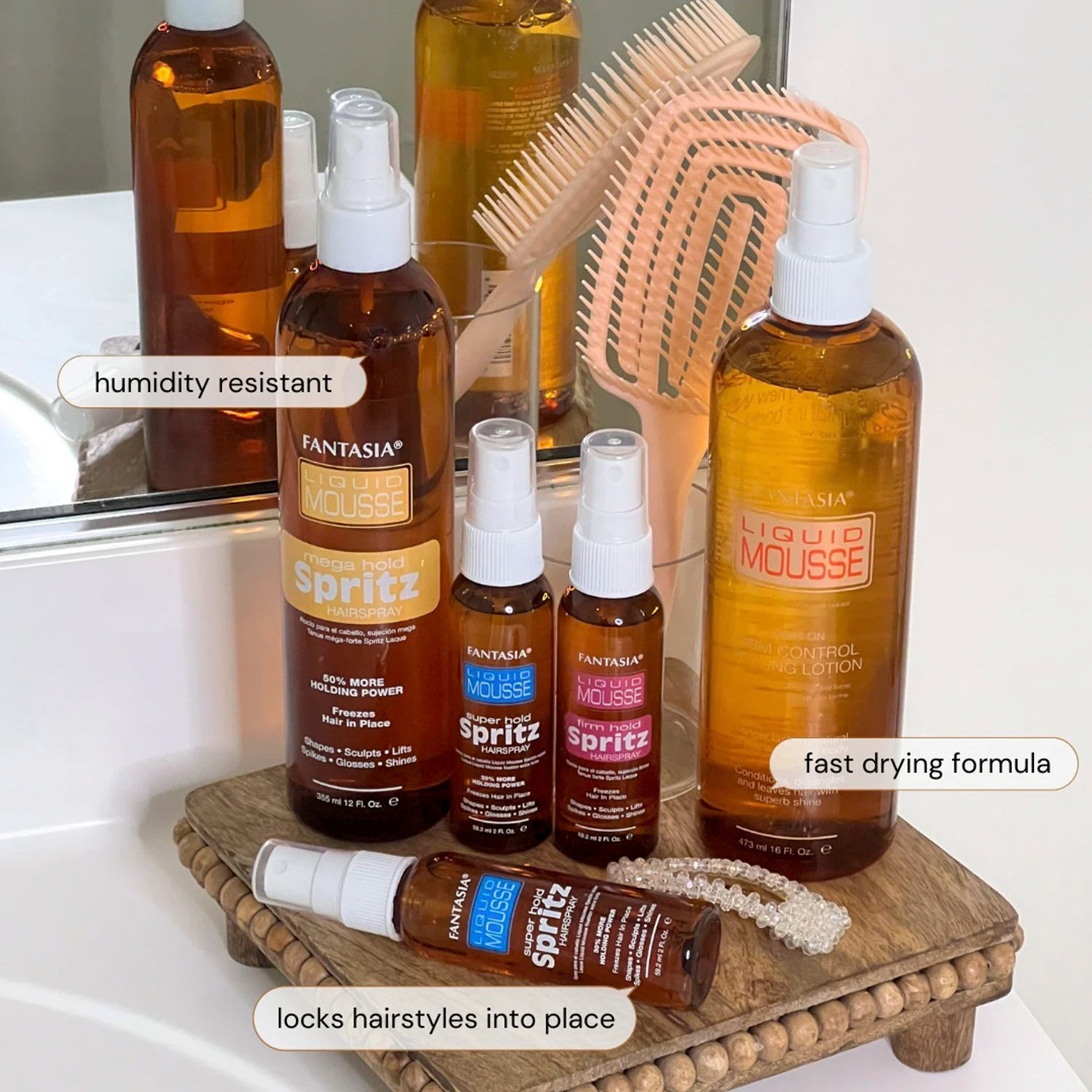 Fantasia Liquid Mousse Spritz - Strong Hold, Fast Drying, Long-Lasting Style, Perfect for All Hair Types