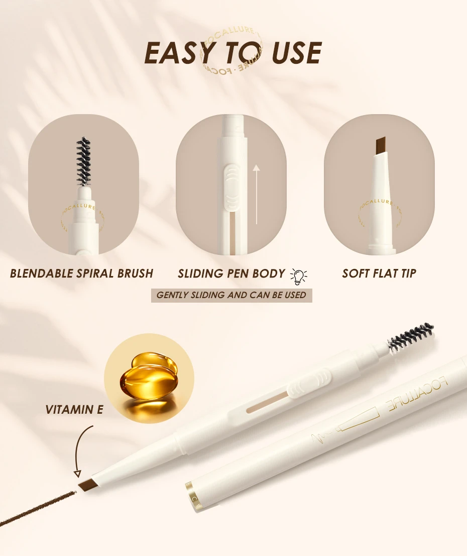 [Sliding Design] Use sliding pen body design, gently sliding and can be used. The flat tip of the pen can draw the outline, fill the color quickly. The other end is fitted with a soft spiral brush to comb and blend the eyebrows, making the eyebrows look more natural