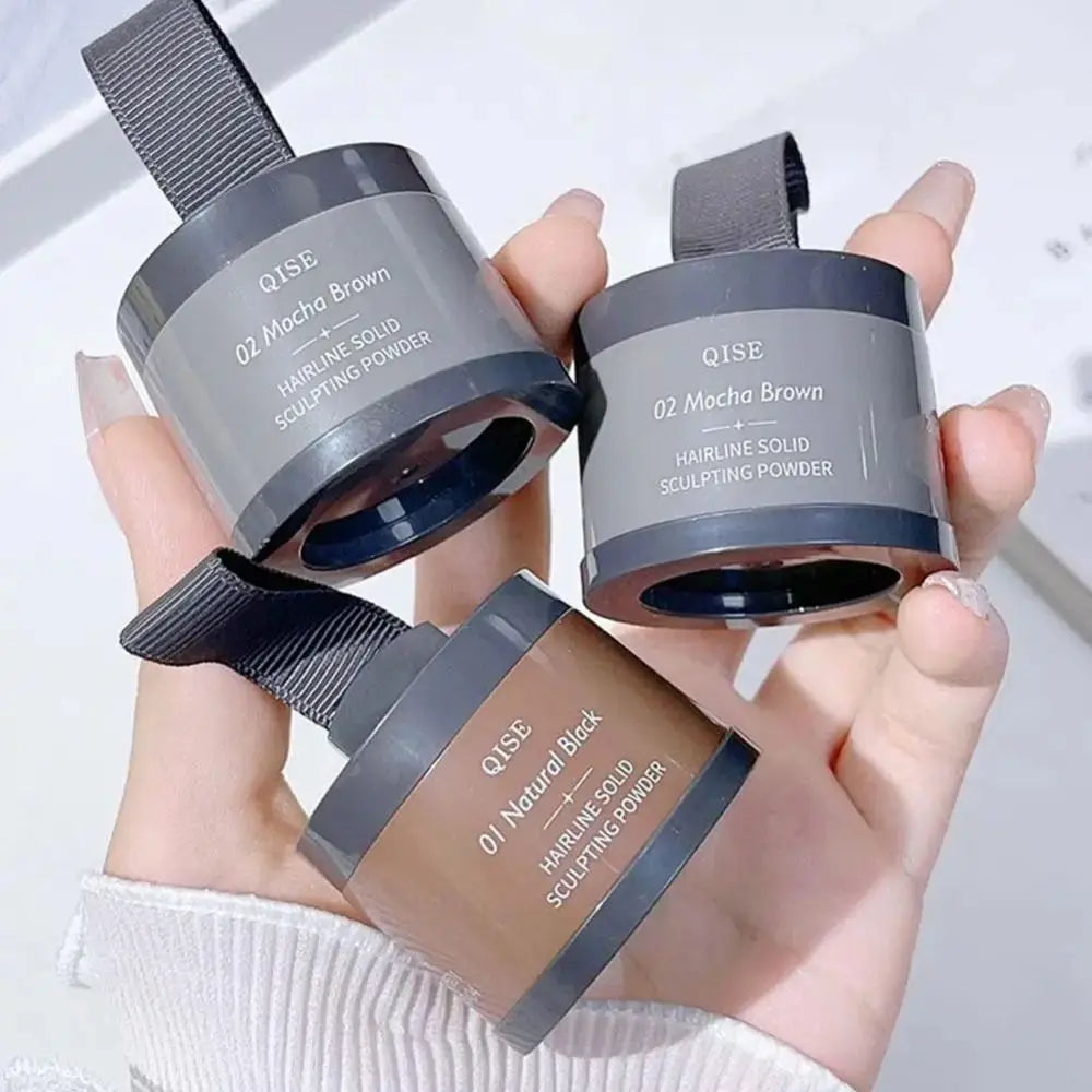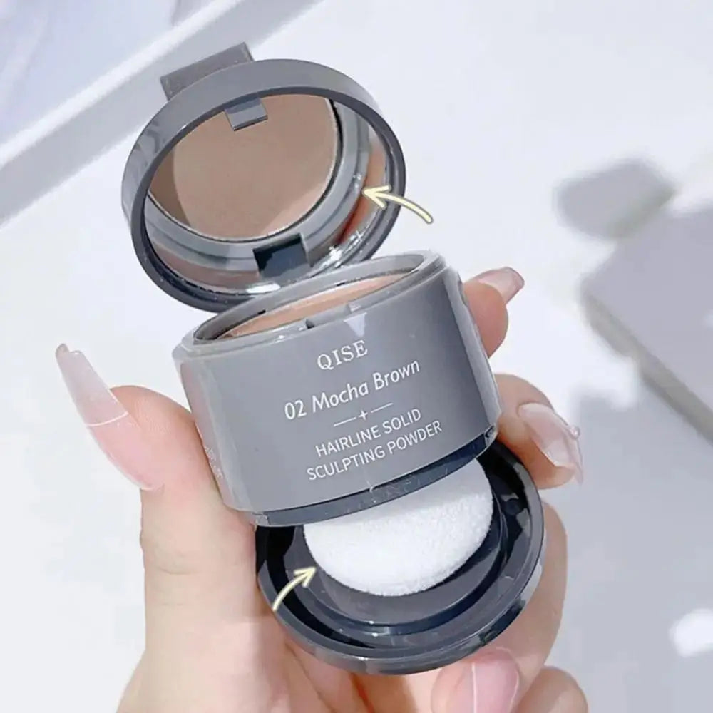 1. When in use, open the small powder pad at the bottom and dip it in a proper amount, and pat the sticky powder along the irregular hair roots to make up the neat hairline.