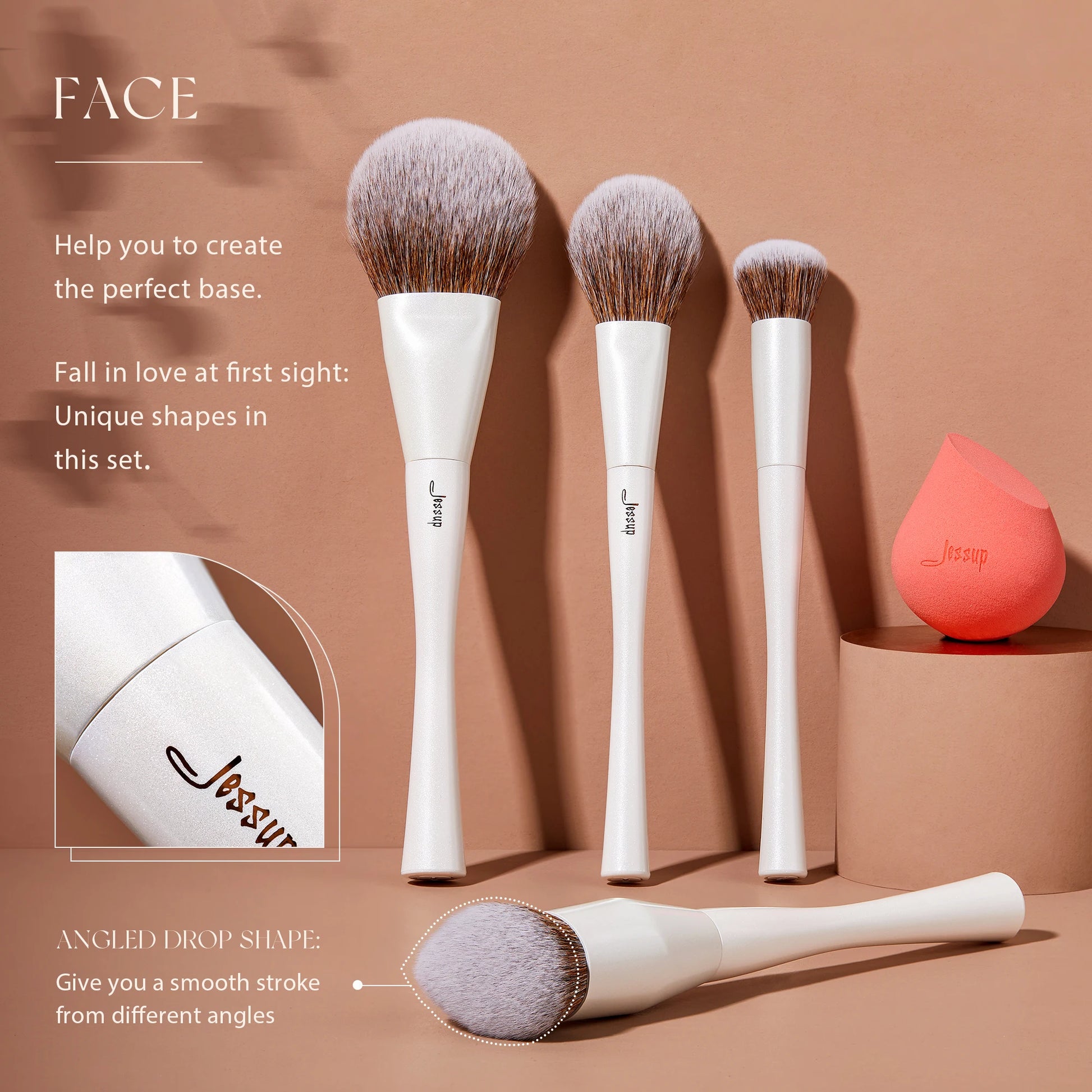 The angled top and drop shape move with the contours of the face and applies makeup smoothly even in those hard to reach areas for full natural coverage & a streak free finish.