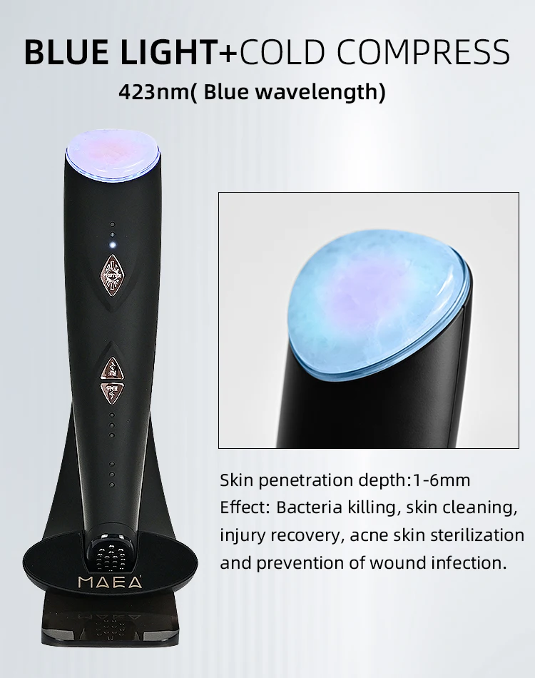 Cold compress function (with blue-violet light): Blue light 423nm can penetrate the skin to