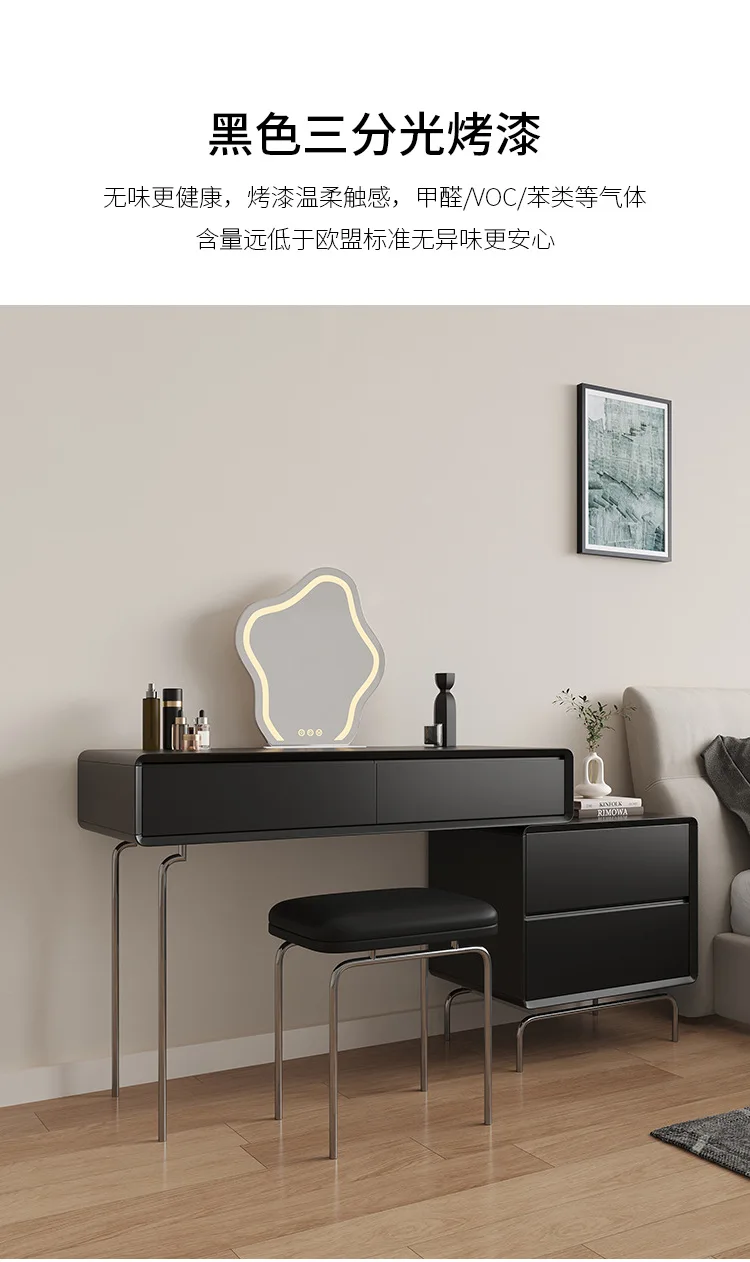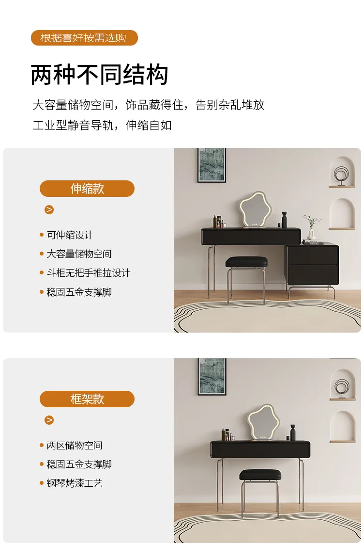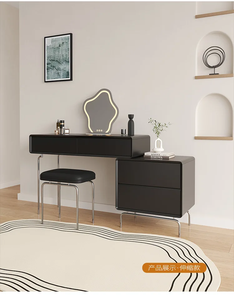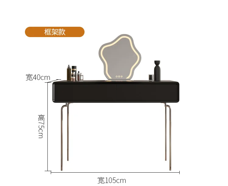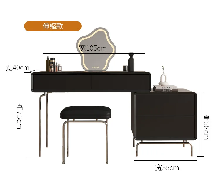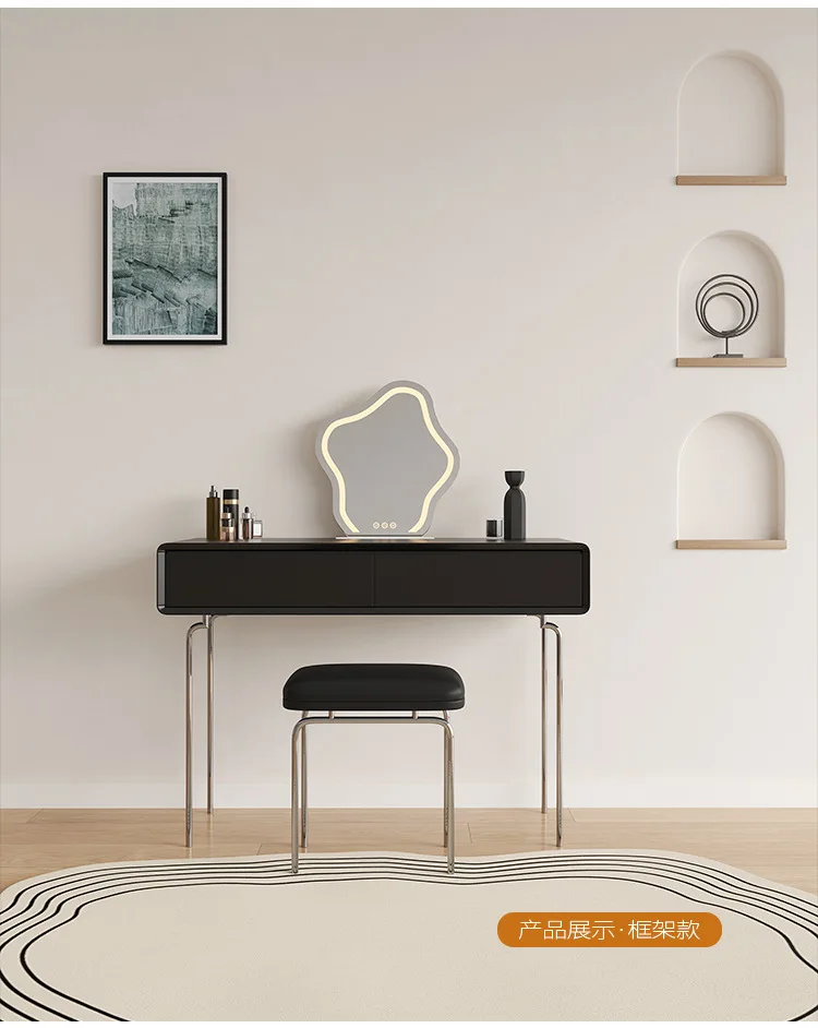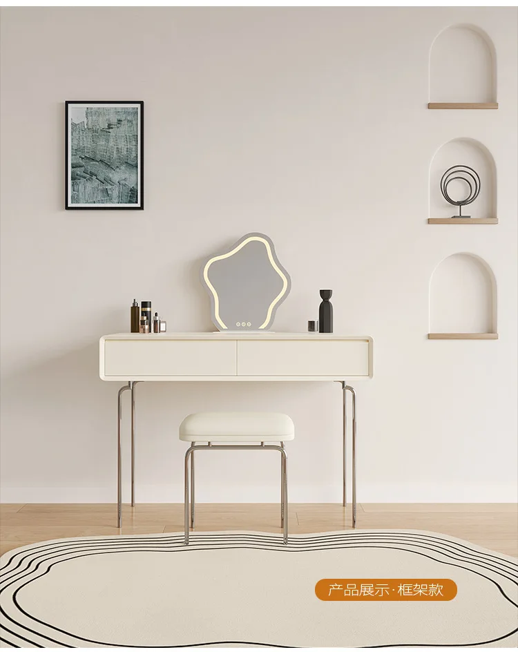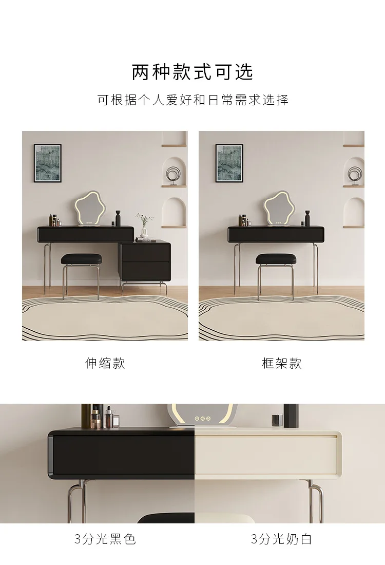 Luxury Makeup Vanity Desk with Mirror and Lights, Dressing Table with Stool Stainless Steel Legs 5 Drawers, Modern Makeup Desk