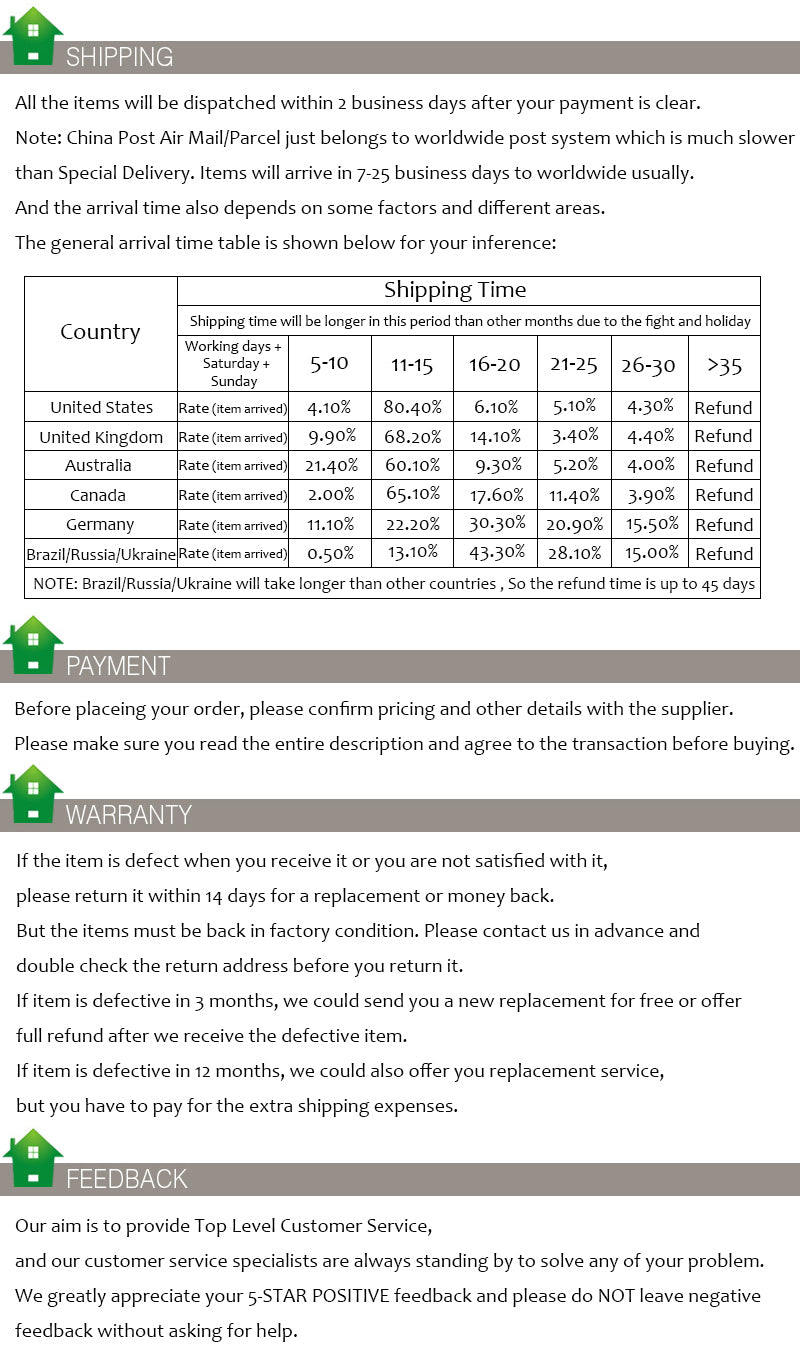 Shipping time refers to the time it takes for items to be shipped from our warehouse to the destination. International delivery usually takes about 15–30 business days. Domestic delivery usually take between 7-14 business days. Note that due to unforeseeable circumstances, items can take longer to arrive at their destination from time to time.