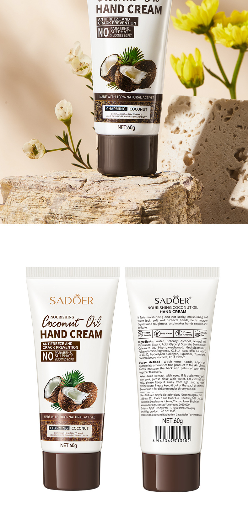 Sadoer Coconut Oil Hand Cream – Repair Dry & Cracked Skin 60g