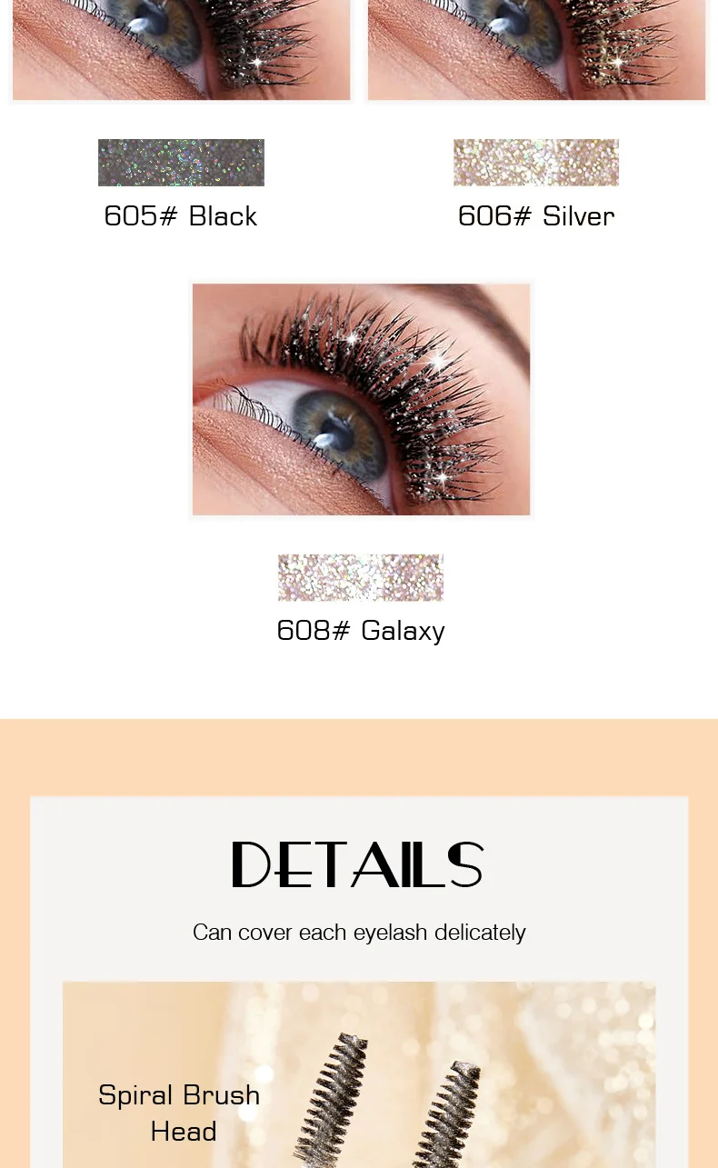 Silver Diamond Glitter Mascara – Waterproof, Curling, Fast Dry