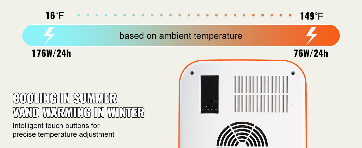 Cooling & Warming: Our mini fridge features both cooling and warming functions, allowing you to adjust the mode to your desired temperature. The cooling mode can reach below 73.4 ℉ ambient temperature (2H power on), while the warming mode can go up to 140 ℉ ambient temperature (1.5H power on).