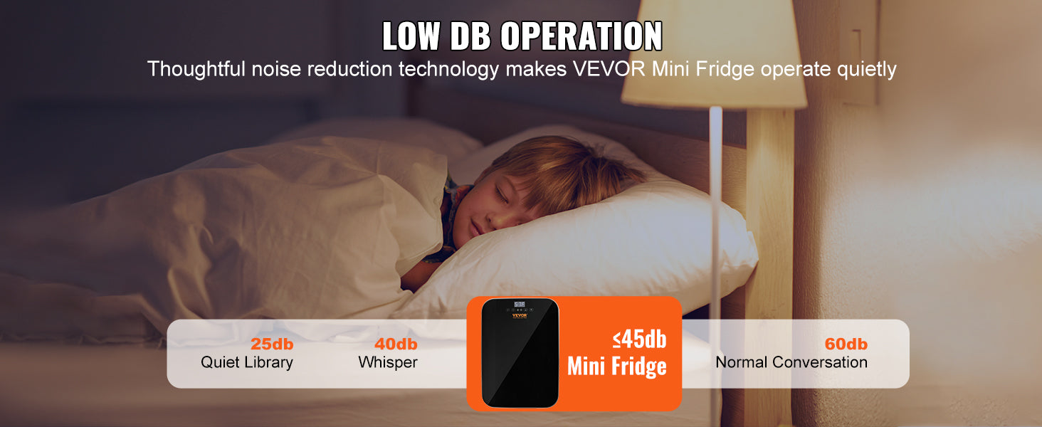 Quiet Operation: The considerate noise reduction technology ensures that the fridge operates at a noise level of less than 45bd, making it quieter and less disruptive to work and daily life. It won't disturb your rest and is perfect for any setting - be it your bedroom, office or nursery.