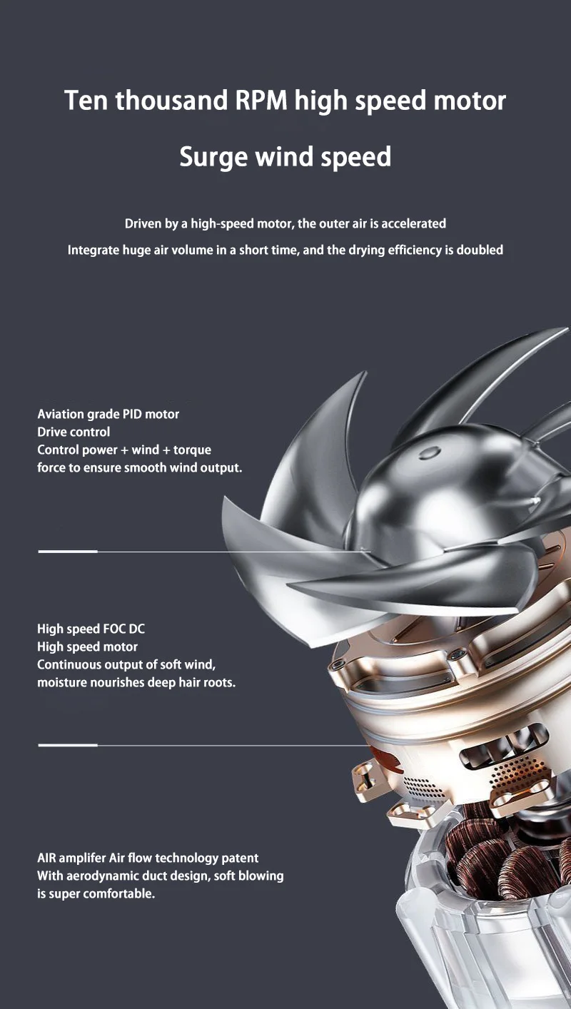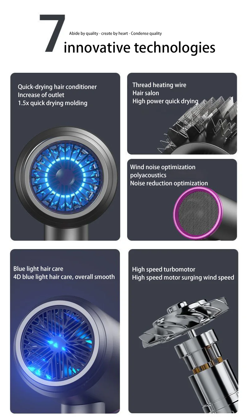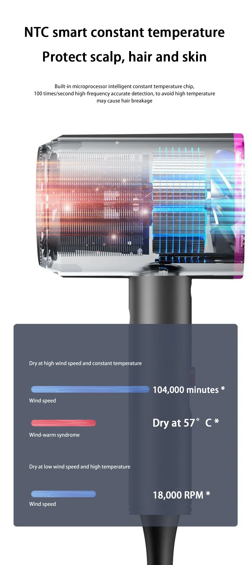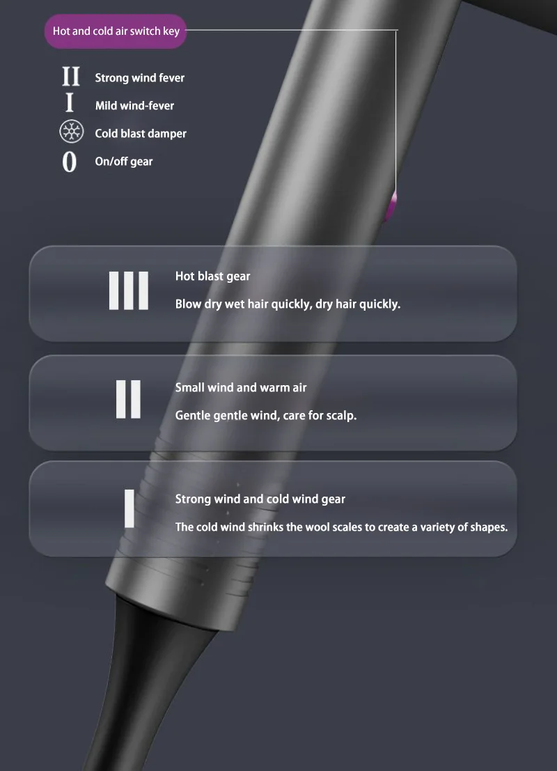 .The modulated brushless motor with low noise can bring a pleasant blowing experience.